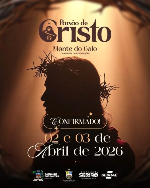 A encenação da Paixão de Cristo do Monte do Galo, considerada a maior do Rio Grande do Norte e uma das mais emocionantes do Nordeste, já tem data confirmada para sua próxima edição. O espetáculo será realizado nos dias 2 e 3 de abril de 2026, no Santuário de Nossa Senhora das Vitórias, aos pés do Monte do Galo, em Carnaúba dos Dantas, território do Geoparque Seridó.