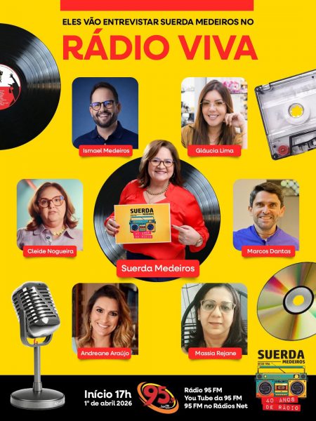 O programa será transmitido ao vivo pela 95 FM e também pelo canal oficial de Suerda Medeiros no YouTube, ampliando o alcance da celebração para diferentes públicos.