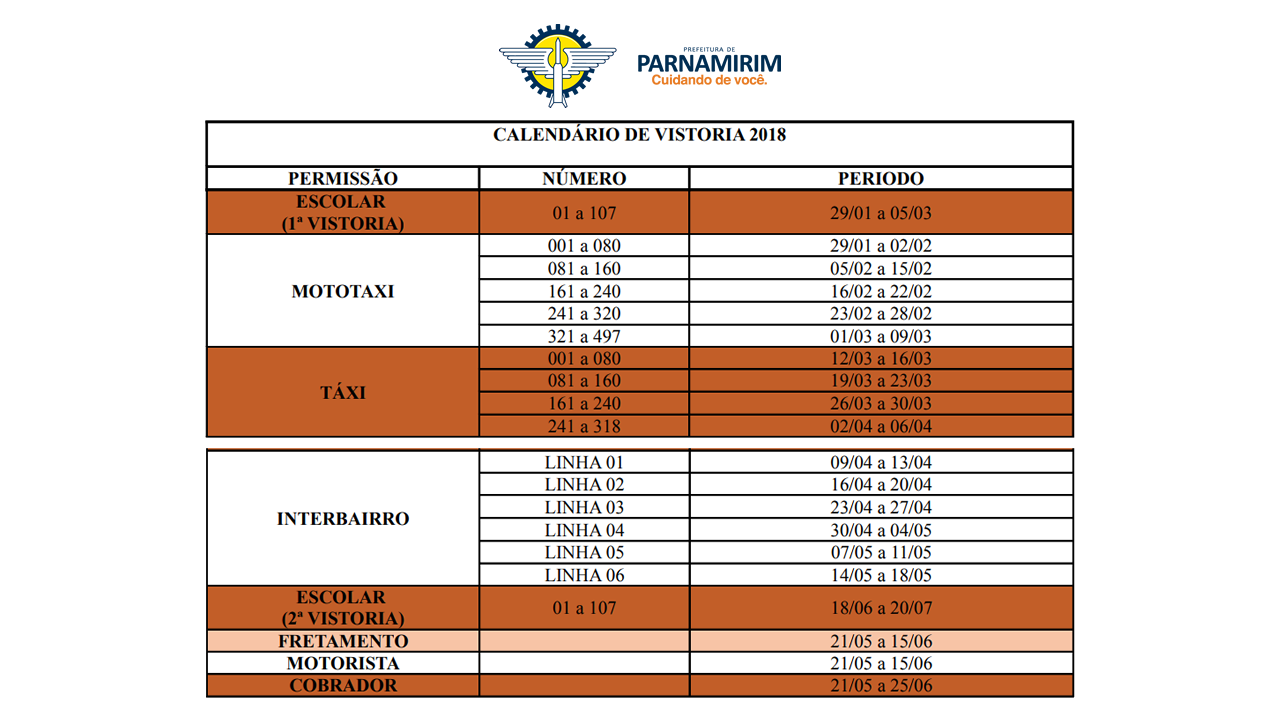 O calendário de vistorias do transporte público prossegue sendo executado pela SESDEM até 25/06. Outras informações pelo telefone (084) 3644-8169.